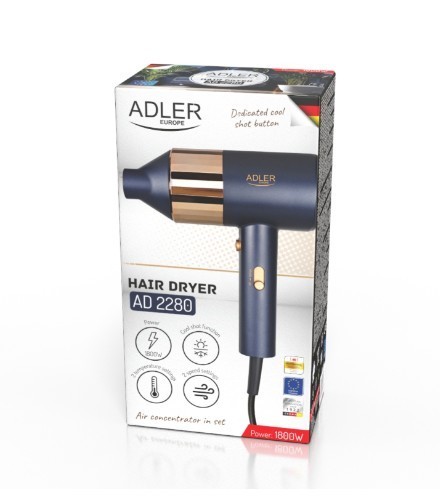 Suszarka do włosów Adler AD 2280 to praktyczne i niezawodne urządzenie, które łączy wysoką wydajność z łatwością użytkowania. Dzięki mocy 1800W oraz funkcjom dostosowanym