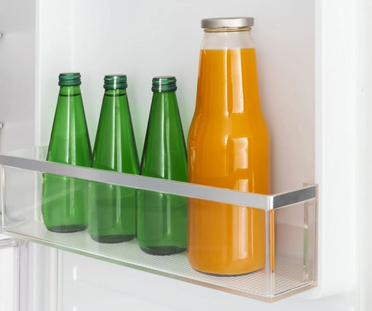 Bezpieczne przechowywanie produktów w szkalnych butelkach. Dopasowany kształt półki utrzyma butelki na swoim miejscu, a przy okazji ułatwi Ci optymalne wykorzystanie przestrzeni w komorze chłodziarki.