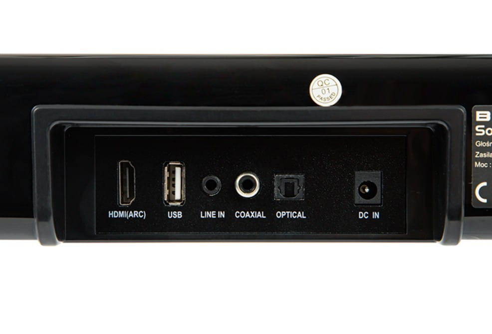 - Złącze optyczne, HDMI (ARC), USB, Coaxial oraz AUX