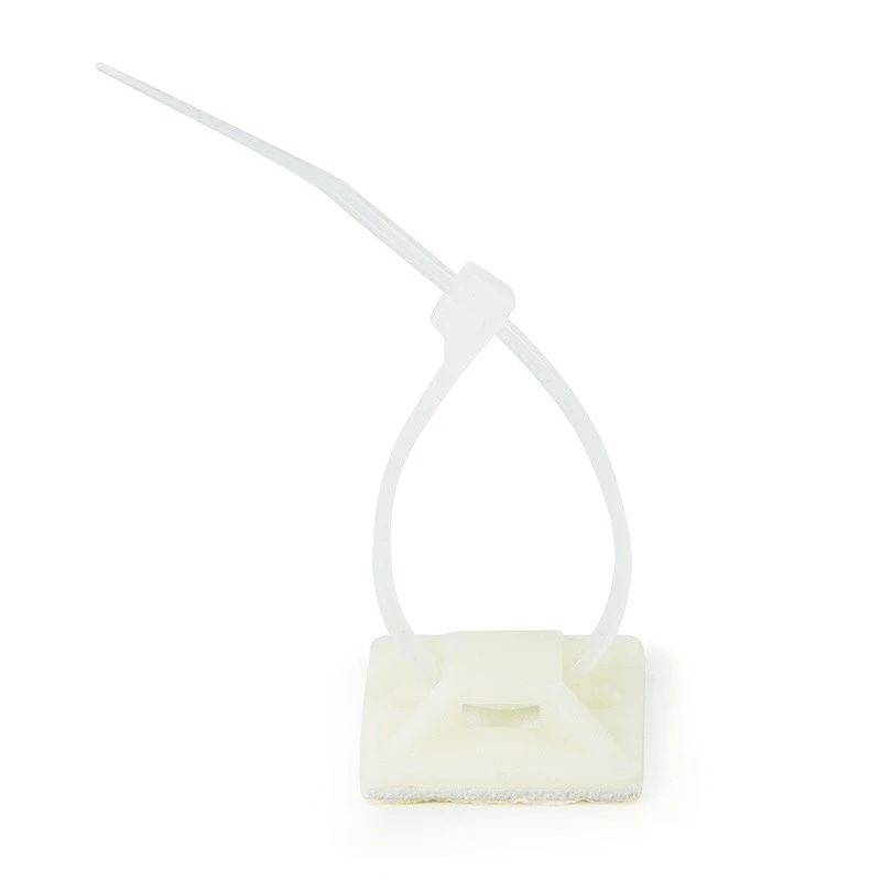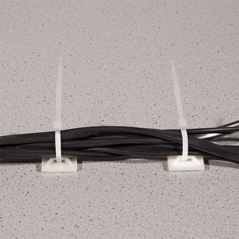 Pozostałe parametry: Mocowanie do uporządkowanego układania kabli lub węży Powierzchnia kontaktowa: 19 x 19 mm Przyjmowanie opasek kablowych: 8 mm x 3.4 mm (szerokość x wysokość) Samoprzylepne Materiał: ABS (odporne na oleje, smary, warunki atmosferyczne i starzenie) Kolor: naturalny Recyklingowalne Zawartość opakowania: 100 szt. Pakowanie: luzem