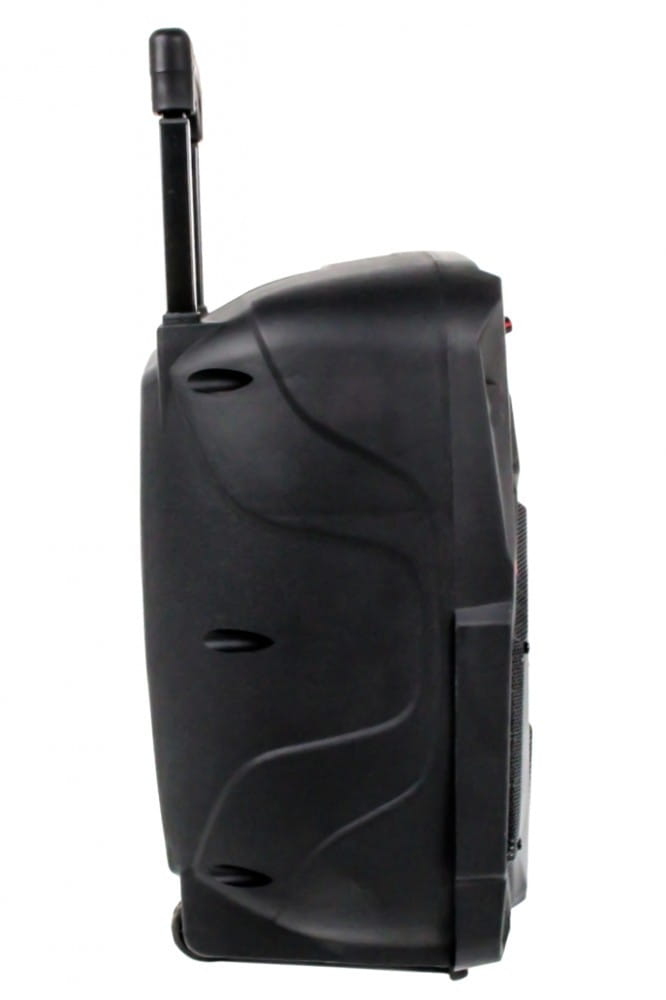 Pozostałe parametry: Bluetooth do odtwarzania muzyki poprzez profil audio streaming Funkcja karaoke Moc: 1600 W P.M.P.O. Głośnik wysokotonowy: 1 x 1,5 cala Głośnik niskotonowy: 1 x 8 cal Odtwarzacz MicroSD (do 32 GB) Radio FM Wielokolorowe podświetlenie LED Wbudowany akumulator 1800 mAh, 3,7 V Zasilanie: DC 5 V max 2 A