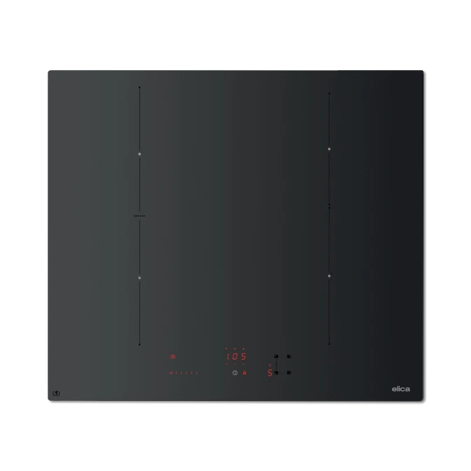 Jedną z najważniejszych funkcji modelu Elica Ratio Connex 604 Plus Raw jest Bridge Zone, czyli możliwość połączenia dwóch pól po lewej stronie w jedną większą strefę. To praktyczne rozwiązanie przy większych garnkach, patelniach grillowych i naczyniach o niestandardowym kształcie.