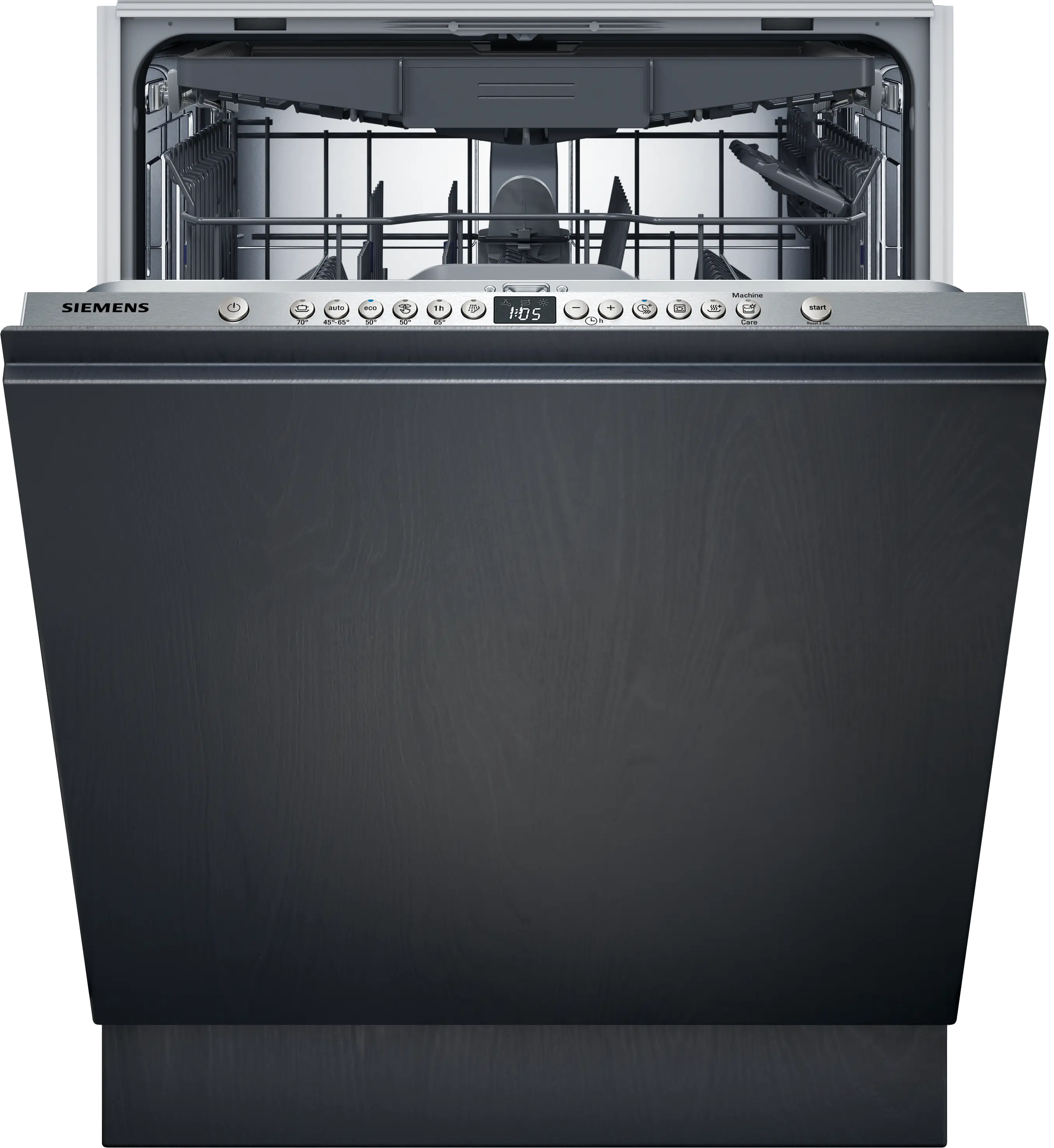 Siemens SN616X00KF to w pełni zintegrowana zmywarka do zabudowy 60 cm – idealna, jeśli chcesz zachować spójny wygląd kuchni (front meblowy zakrywa drzwi, a panel sterowania pozostaje ukryty).